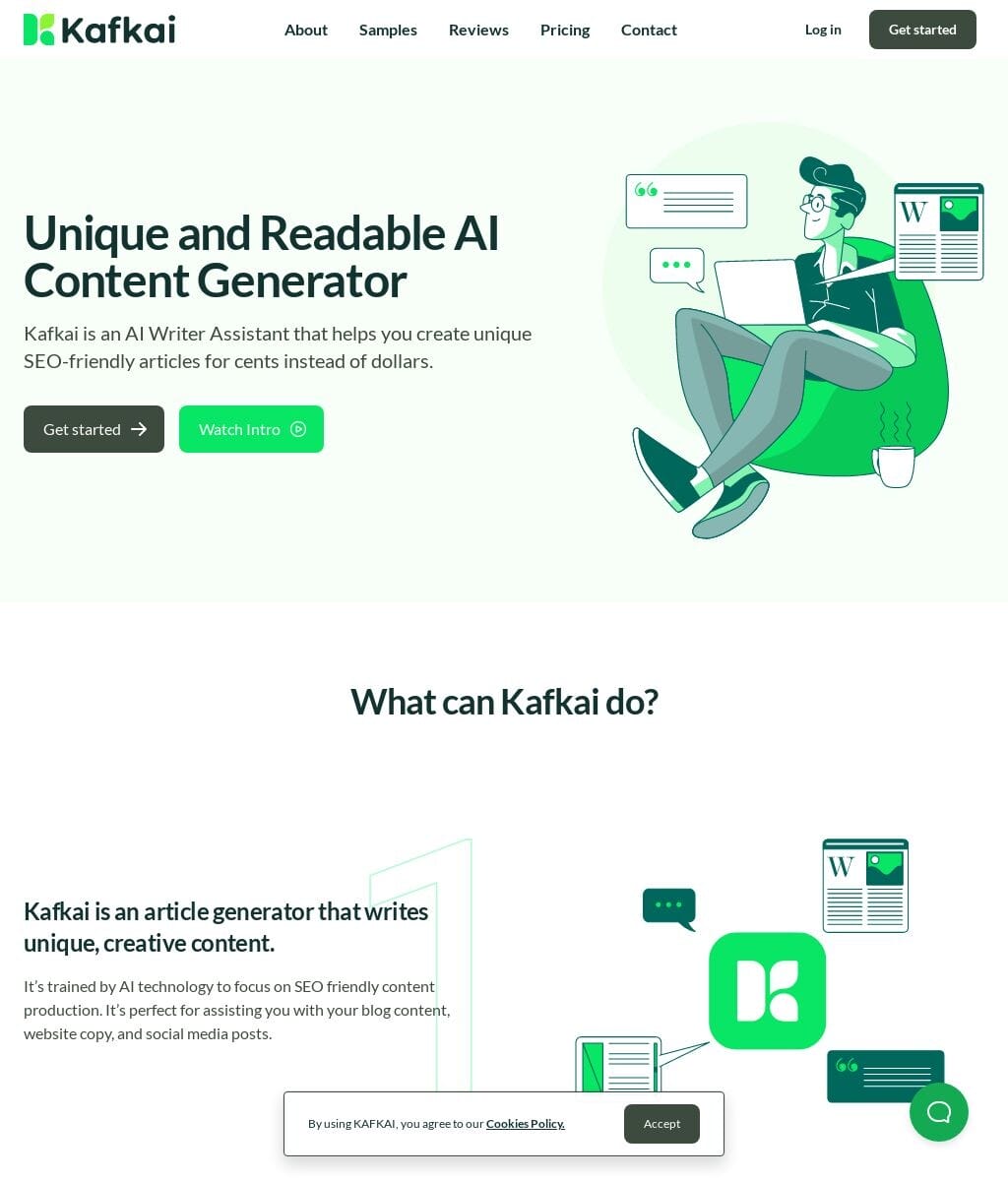 CopywritingKafkai is an affordable AI content generator that produces unique written content efficiently.WebsiteWhat is Kafkai
