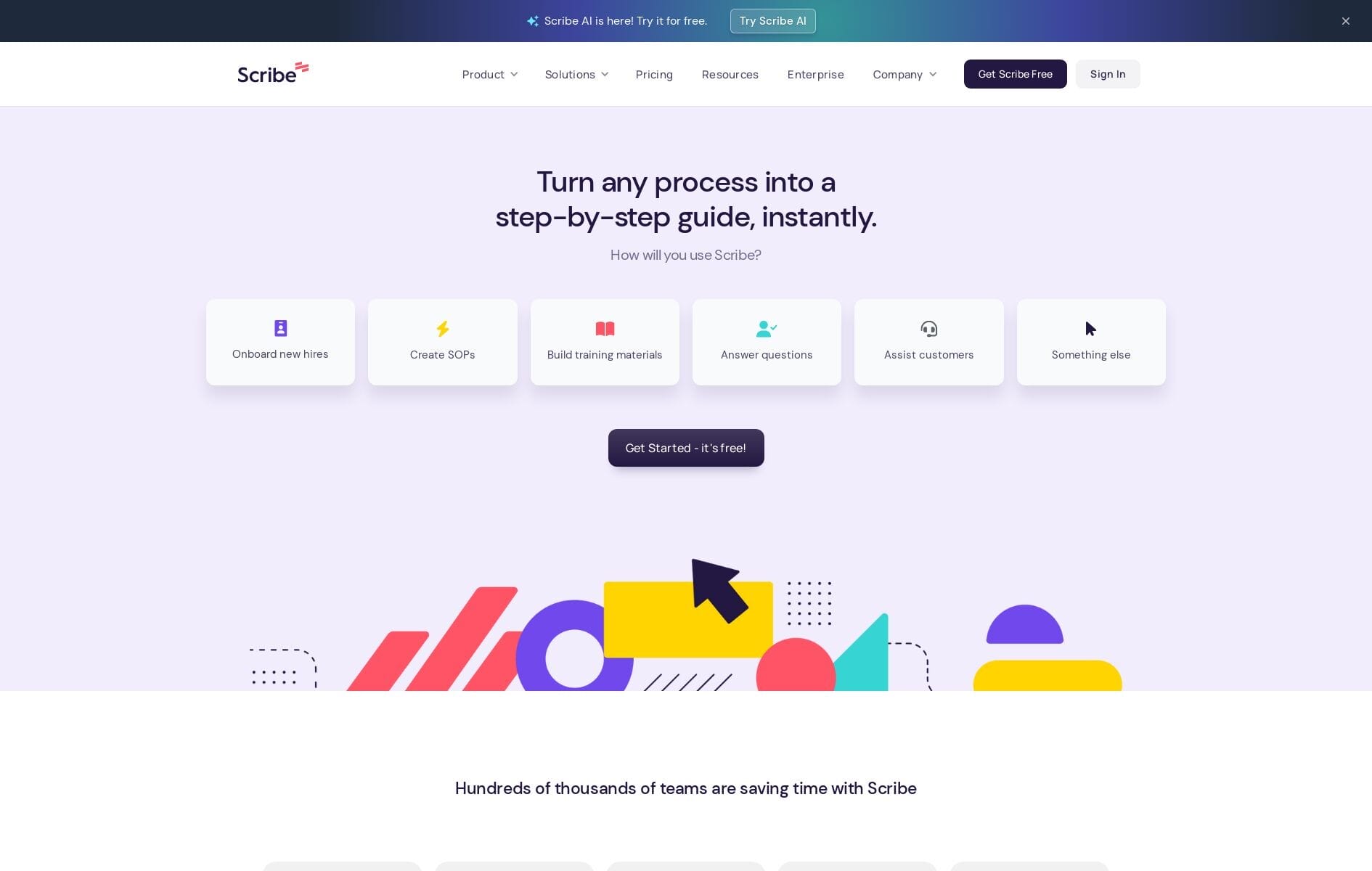 - Create onboarding documents for new hires, training materials for customers, or instructions for technology rollouts in just minutes. Scribe’s versatile features cover everything from sharing URLs to embedding in existing tools and wikis.